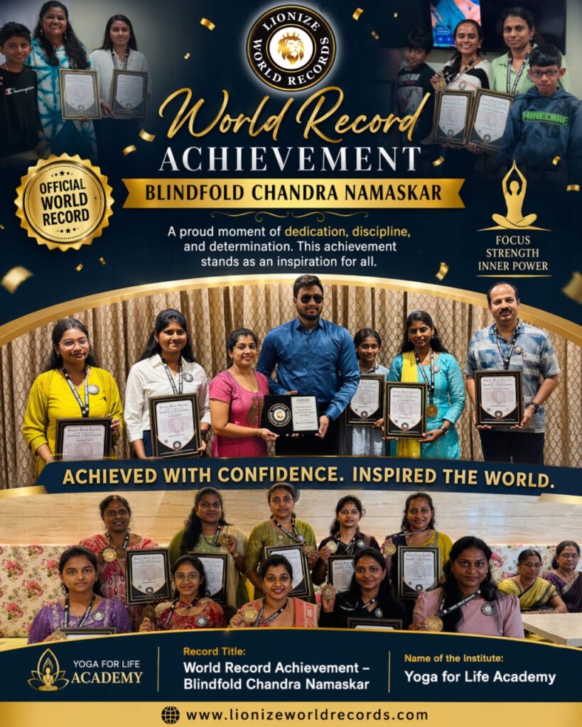 The Blindfold Chandra Namaskar event by Yoga for Life Academy represents a powerful combination of discipline, coordination, and leadership. It highlights how traditional practices like yoga can be adapted into structured, measurable achievements.